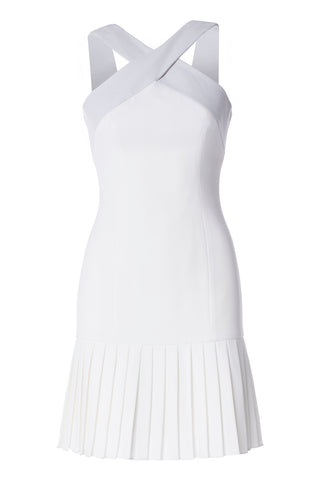 CREPE A-LINE GOWN WITH MACRAME NECKLINE
