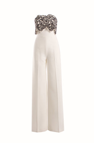 CREPE JUMPSUIT WITH SILK WOOL WAISTBAND